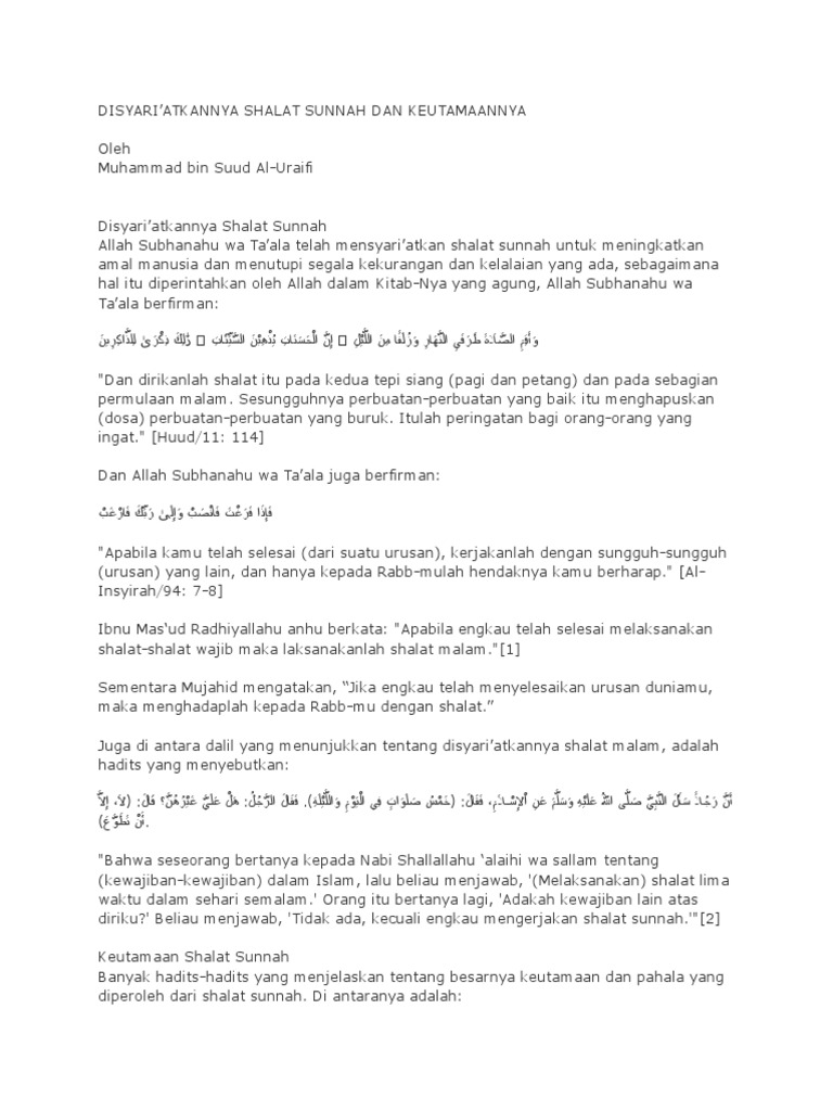 Rumaysho Com Keutamaan Shalat Sunnah Shalat Sunnah