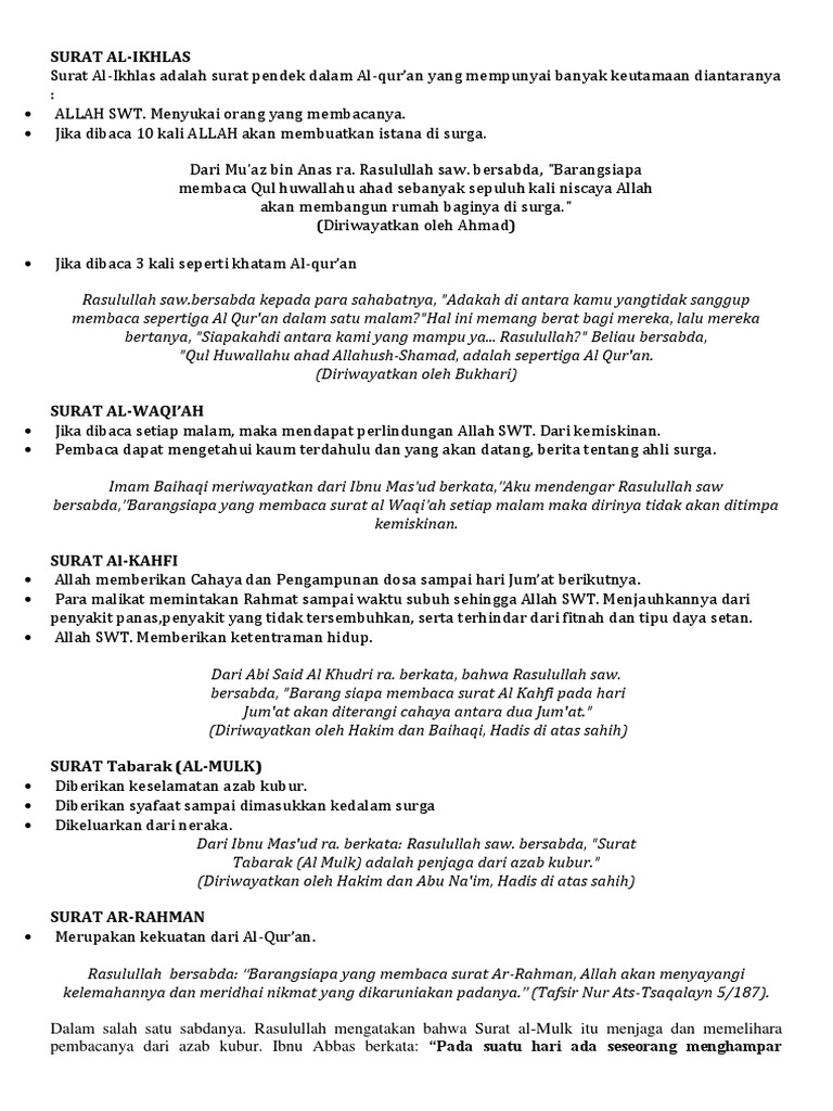 Ketika menjadi imam sholat bagi pasukannya laki laki itu selalu membaca surat al. Hadits hadits yang menerangkan keutamaan surat al ikhlas. Dalam al quran tuhan berfirman dan menjelaskan bahwa dia lah allah yang maha esa.
