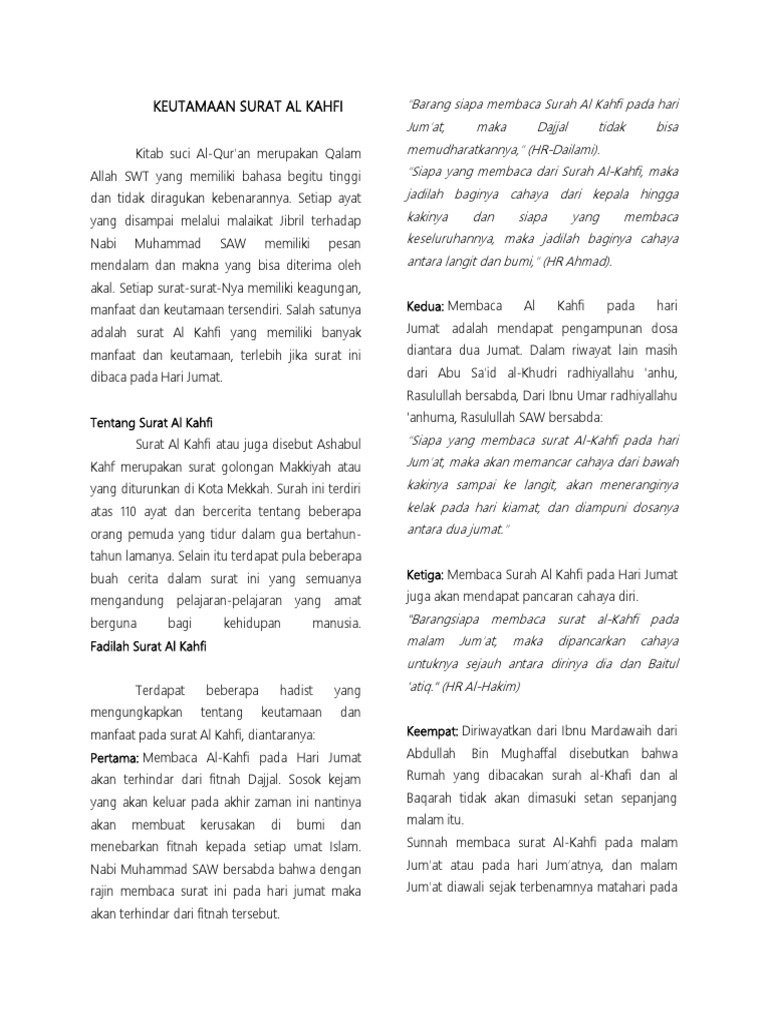 Keutamaan Surat Al Kahfi 1 Docx